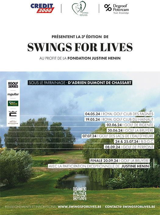 Le Royal Golf Club du Hainaut organise le dimanche 19 mai une manche au « Swings for Lives » au profit de la Fondation Justine Henin.