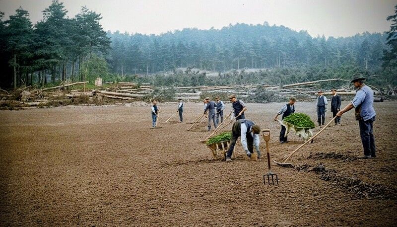 Cela exigeait alors beaucoup de main-d'œuvre, mais aussi parfois de la dynamite pour éliminer les souches et les racines des arbres...
