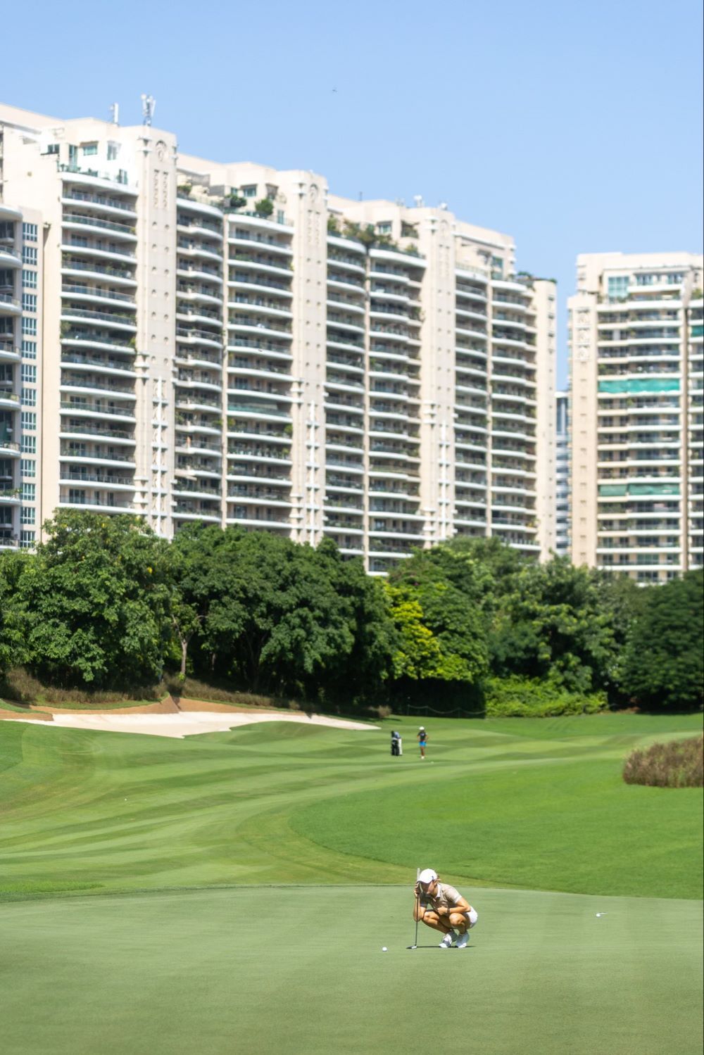 Le DLF Club se trouve à Gurugram, en Inde. DLF Cyber City est considéré comme un des plus grands centres IT d'Inde. Les gens riches habitent dans les bâtiments le long du parcours de golf. Ce sont surtout les complexes Aralias et Magnolias qui proposent de grands appartements luxueux. On se demande tout de même s'ils ont vu, comme ici, Chiara Tamburlini sur le Ladies European Tour ?