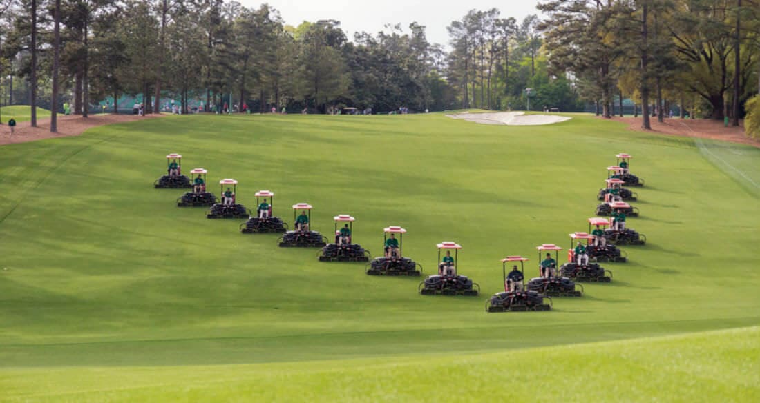 Le parcours du Augusta National est manucuré. Les fairways sont toujours tondus en colonnes. Bien en lignes.On y gère aussi la floraison des nombreuses fleurs.On met, par exemple, de la glace pour que ces fleurs ne fleurissent pas trop tôt.