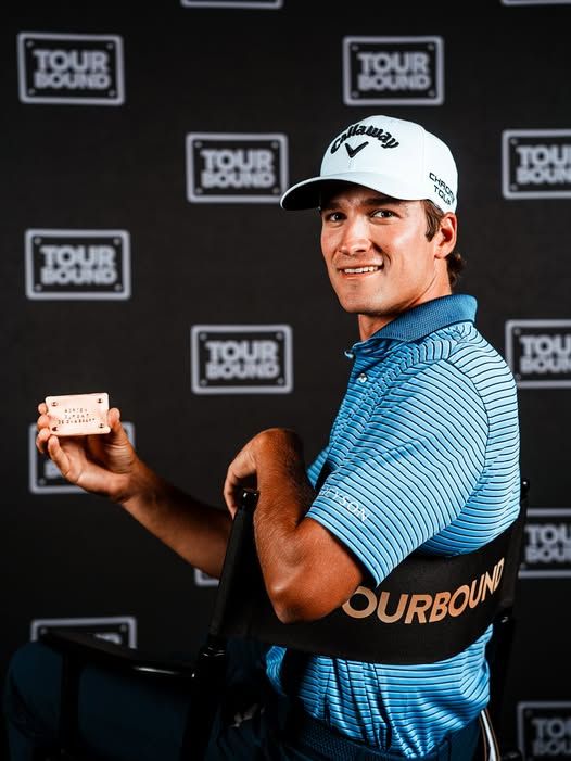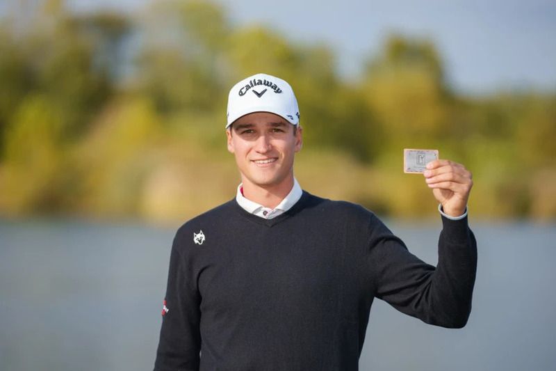 Adrien Dumont de Chassart montre ici fièrement sa carte pour l'US PGA Tour 2026.