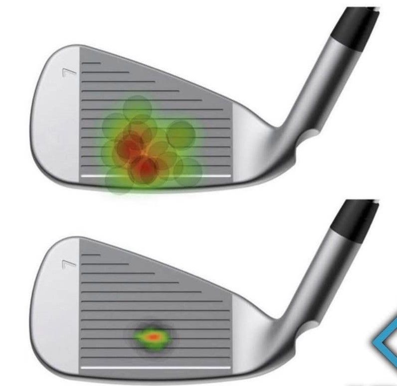 Voici comment touchent un joueur hcp 15 et un du Tour leur fer 7.Une claire différence.Ne soyez donc pas trop déçu si vous ne touchez pas "clean" votre balle...