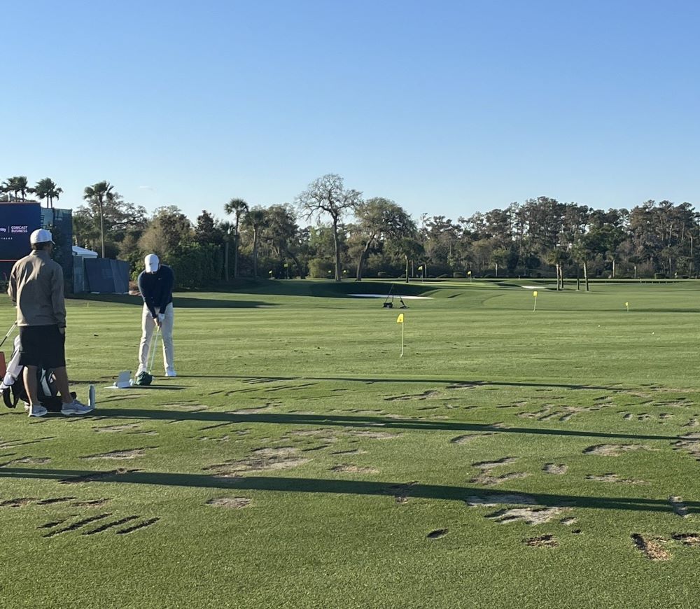 Hier, avant d'aborder le play-off du The Players, Rory McIlroy a testé ses coups au driving range dans le vent.