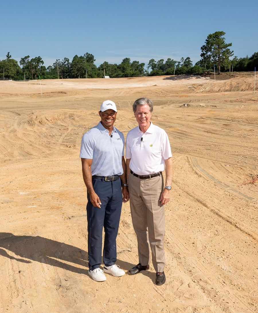 En compagnie de Fred Ridley, le président du Augusta National Golf Club, ils ont inspecté l'avancement des travaux du nouveau short course qu'il a dessiné au Augusta Municipal Golf Course.Un projet financé par l'Augusta National.