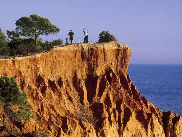 Le parcours neuf trous du Pine Cliffs Resort en Algarve avait comme dernier trou un par 3 plus que sensationnel, où on démarrait d'une falaise pour arriver sur un green en contrebas.