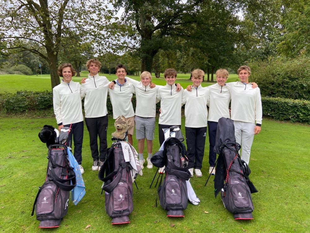 De gauche à droite Lowie Leliaert (Millennium), Victor Marchal (Royal Keerbergen), Loïc Goethals (Koksijde Golf ter Hille), Pieter Janssen (Millennium), Lucas Pauwels (Ternesse), Clément Melange (Ravenstein), Arthur Haghedooren (Royal Keerbergen) et Jules De Langhe (Koksijde Golf ter Hille).