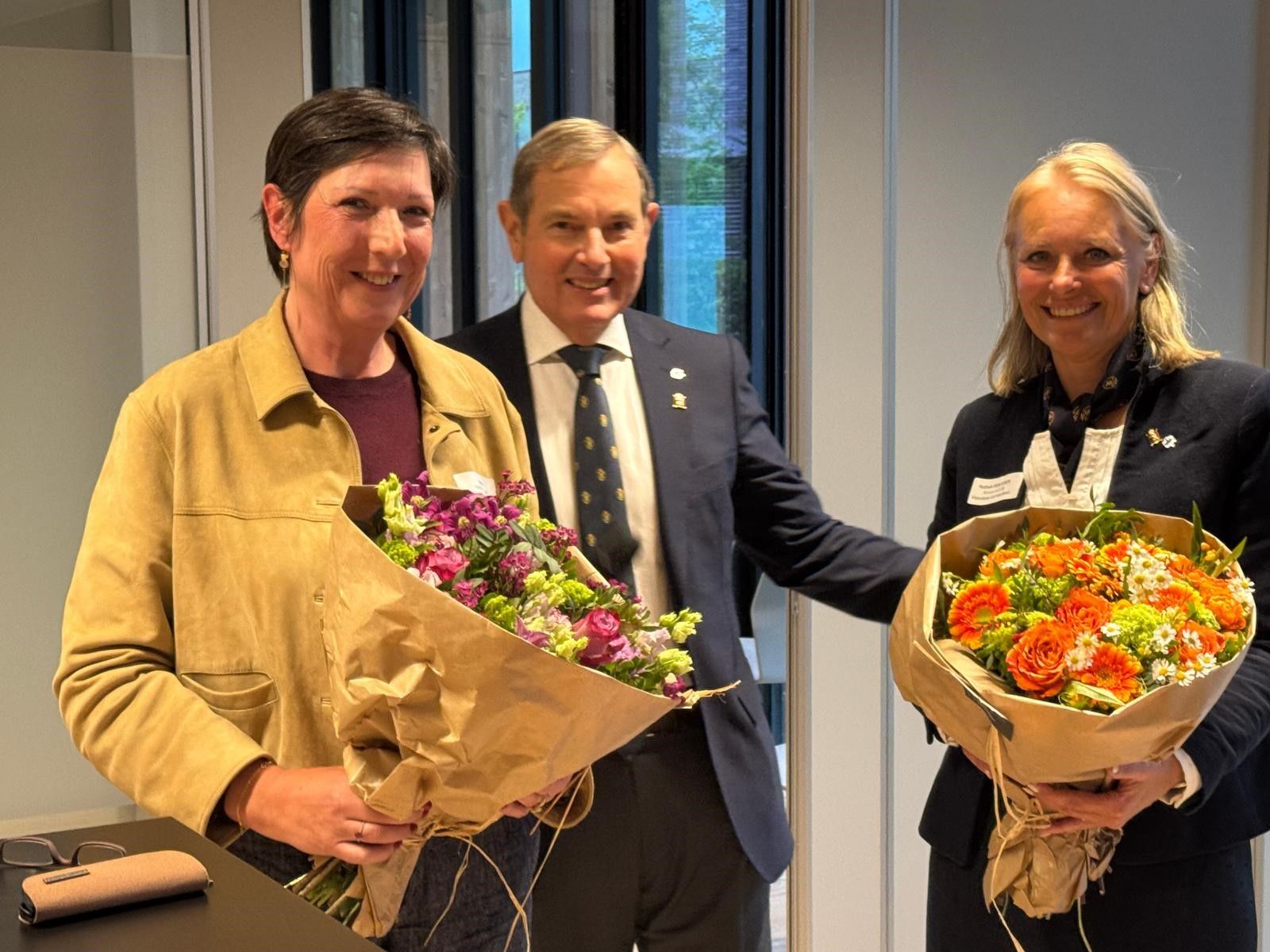 Vous l'avez déjà lu. Paul Van den Eynde a été désigné hier nouveau président de la Fédération Royale Belge de Golf.Au Conseil d'Administration, il pourra compter, entre autres, sur le soutien de deux Nathalie.Nathalie Descampe est la présidente de l'AFGolf et Nathalie Kadic de Golf Vlaanderen.Elles ont été fleuries.