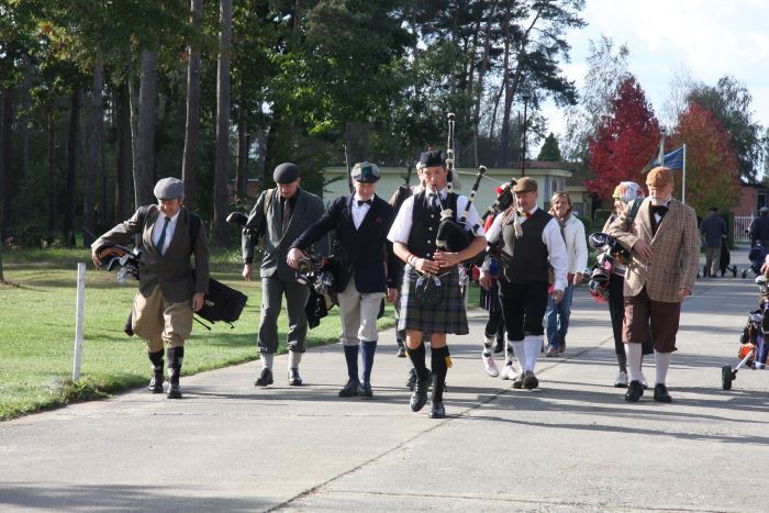 “The Honourable Bandits” est un groupe d'amis qui jouent ici à Witbos une compétition avec cornemuse.