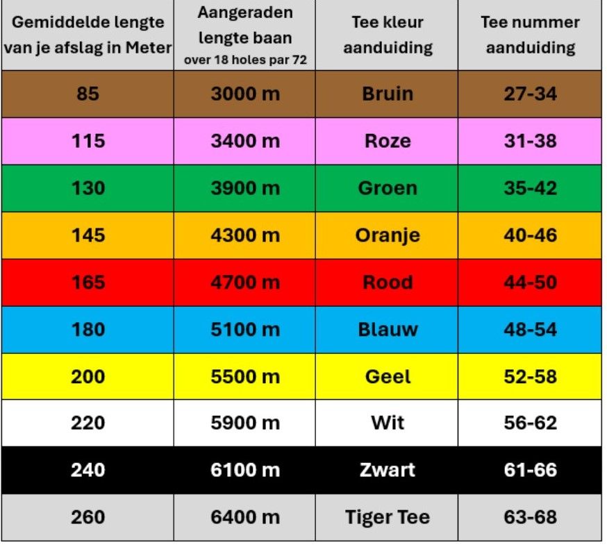 Tout comme nous, Golf Vlaanderen pousse pour que le golfeur choisit le bon tee pour avoir du plaisir sur le parcours.