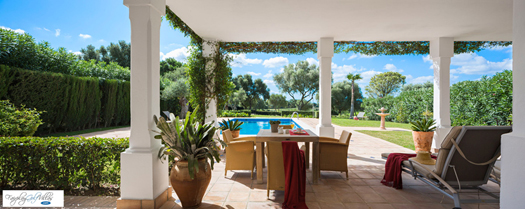 Deze villa heeft een groot overdekt terras van 6 op 15m, met zicht op de golf.