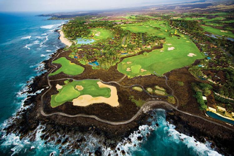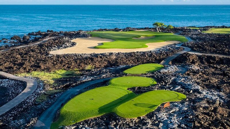 Een golfbanenarchitect is steeds dolblij als de natuur meespeelt. Zoals hier op Four Seasons Hualalai in Kailua-Kona, Hawaii. Hier was lava die voor de “scenery” zorgde. Jack Nicklaus benutte de boeiende omgeving met zicht op de Stille Oceaan optimaal.