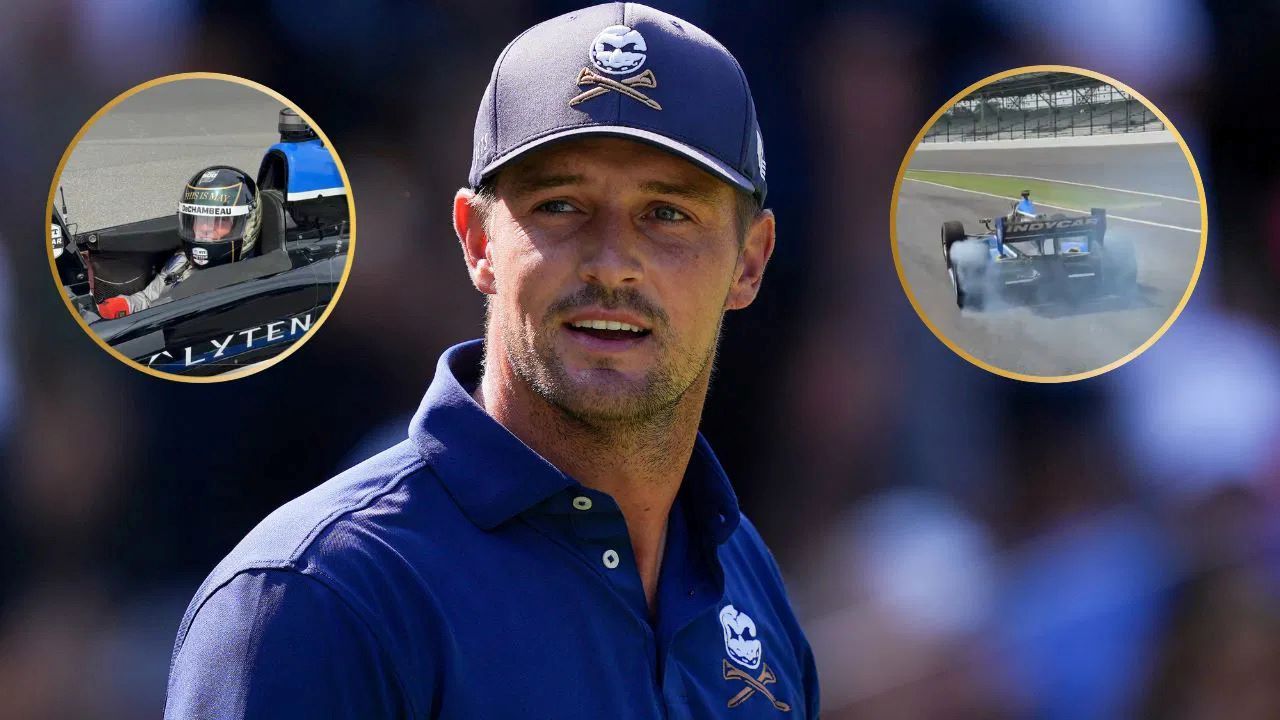 Bryson DeChambeau was gast op de Indy 500. Daar sloeg hij in aanloop van de race een bal op de ovaal, reed mee in een “double seater” en genoot met volle teugen…