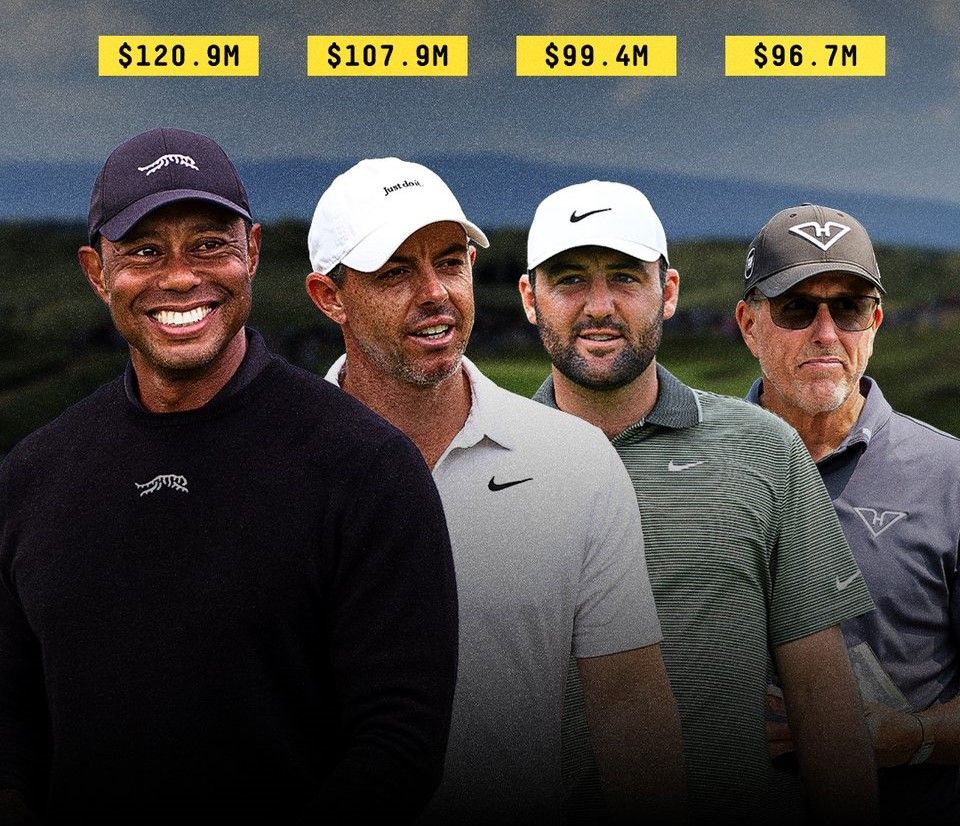 Vier golfers hebben de kaap van 90 miljoen dollar aan prijzengeld gerond. Tiger Woods was vroeger de onbetwistbare nummer één, maar zowel Rory McIlroy als Scottie Scheffler sluipen alsmaar dichter bij. Dustin Johnson is met zo’n 75 miljoen dollar de nummer vijf. Hij kreeg wel 125 miljoen dollar om voor LIV Golf te tekenen…