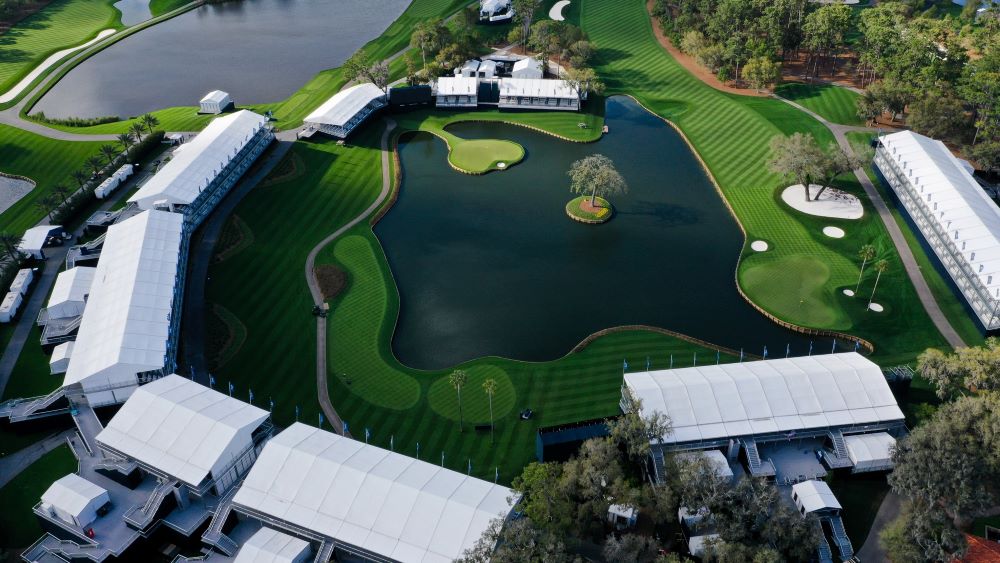 Op TPC Sawgrass verdringt men zich rond de 17de hole. Er is er de accommodatie voor. Die zit eivol, want er is daar spektakel te zien.Lee hieronder maar.