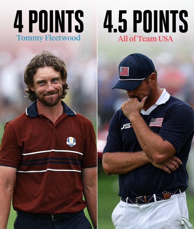 Tommy Fleetwood vergaarde in de dubbelwedstrijden 4 punten. Haast zoveel als héél Team USA. Die 4-0 van Tommy is sinds 1979 niet meer gebeurd.