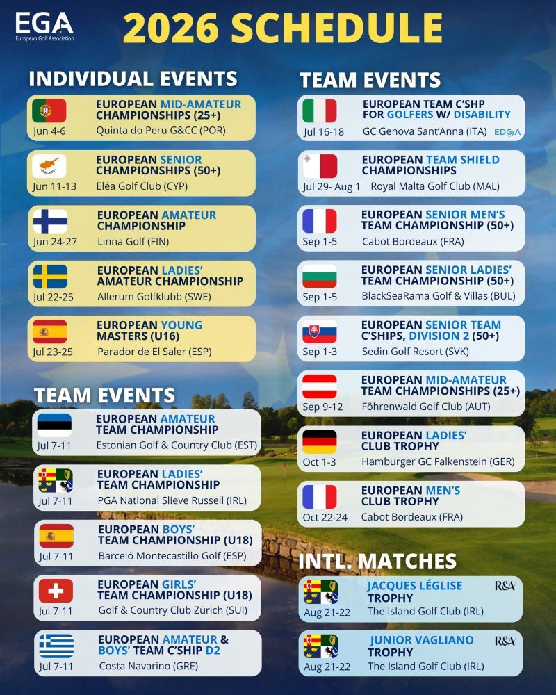 De European Golf Association heeft haar wedstrijdprogramma voorgesteld. Onze top amateurs weten dus waaraan en waaraf. Wel geen EGA-wedstrijd op Belgische bodem.