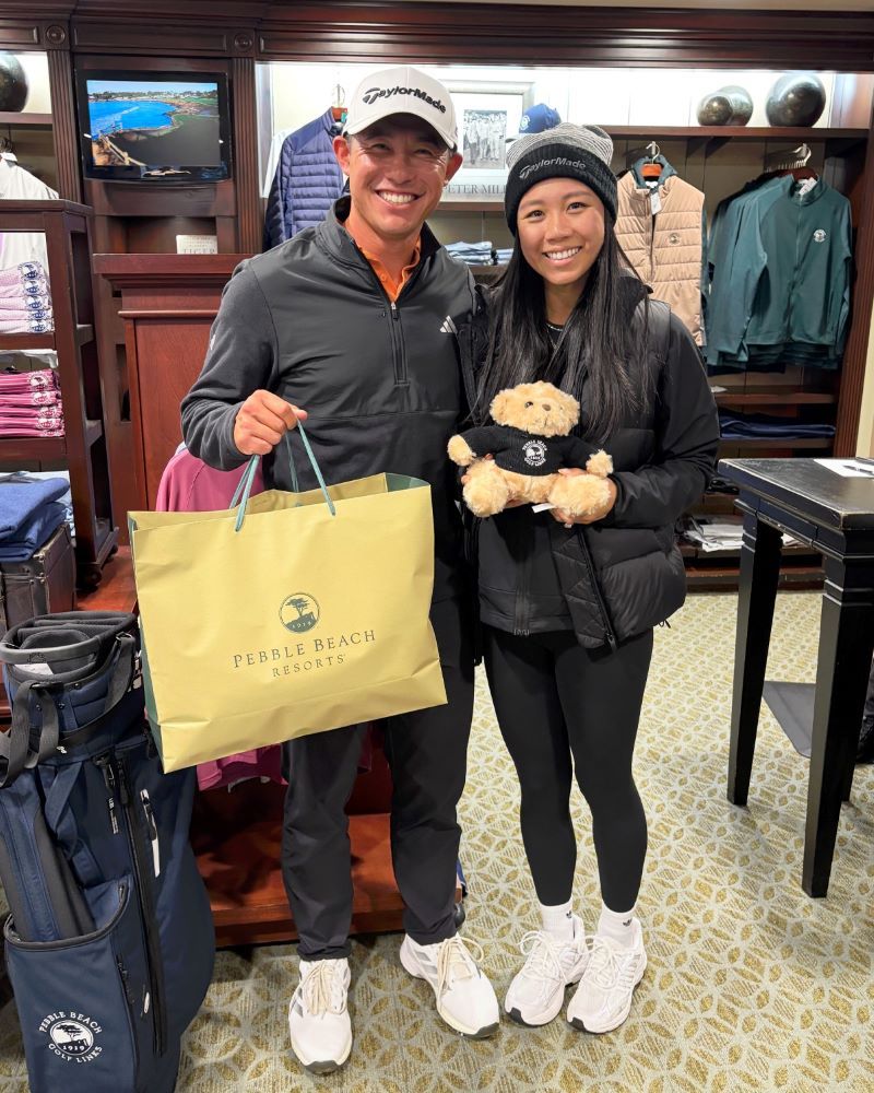 Collin Morikawa verdiende aan zijn zege in de AT&T Pebble Beach Pro-Am leuke 3,6 miljoen dollar winstpremie. Wat shoppen in de pro shop van Pebble Beach kon er dus van af. Katherine, zeg maar Kat, kocht ook een beertje. Ze is immers zwanger en dat is ongetwijfeld een speeltje voor hun eerste kind.