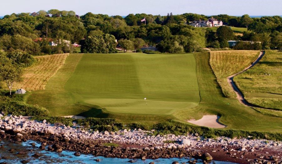 In de States duikt een nieuw green fenomeen op. Daar bouwt men vaak “double plateau greens”.Dus greens die door een helling in twee delen opgesplitst worden. Bijvoorbeeld op Fishers Island, volgens Golf.com de negende beste golfbaan in de Verenigde Staten.