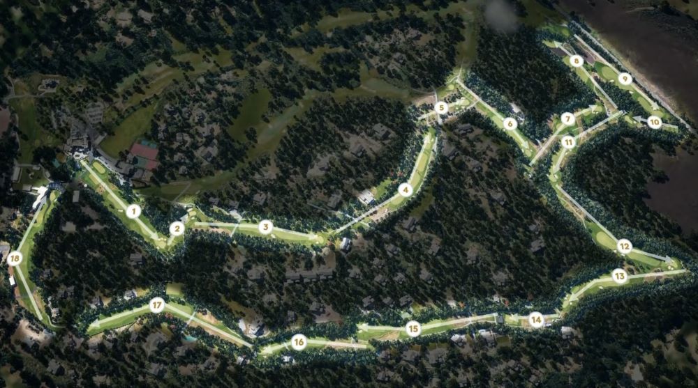 De opeenvolging van de holes op de West Course van Wentworth waar het BMW PGA Championship gespeeld wordt.