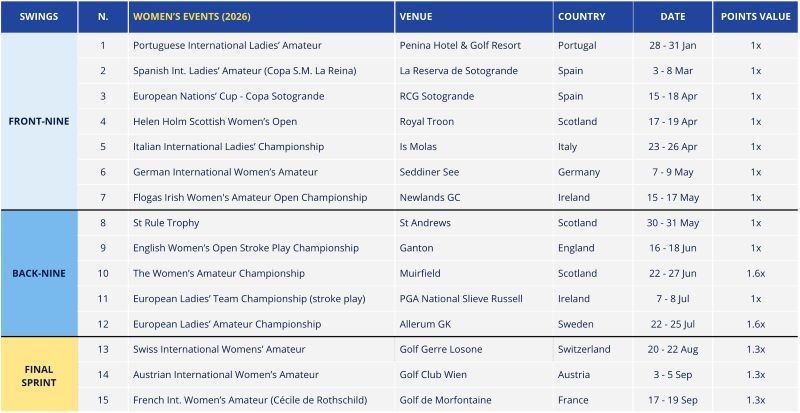 De European Golf Association lanceert volgend jaar een European Amateur Order of Merit (EAOM).