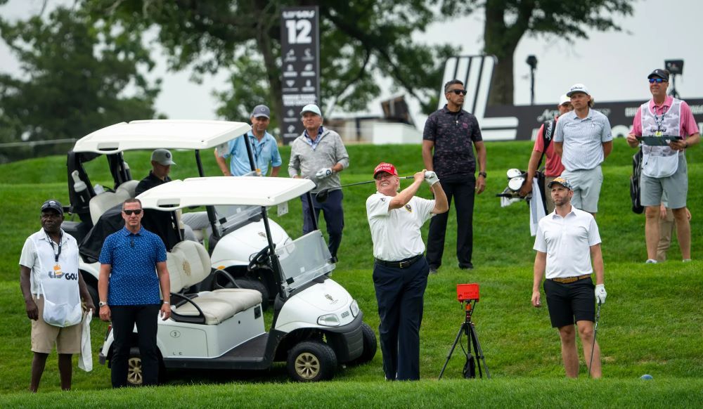 Donald Trump dook zondag bij thuisbasis Mar-a-Lago op om een rondje op zijn Trump International Golf Club in West Palm Beach te spelen.