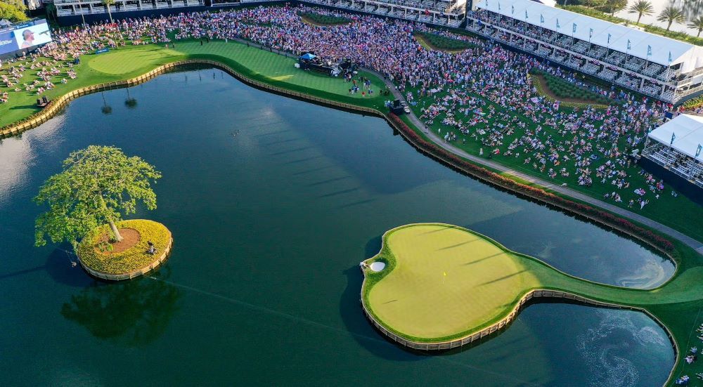 De 17de hole van TPC Swagrass is voor bekend voor de schiereilandgreen. Maar in de waterpartij is er nog een ander eilandje. “Tree Island”…