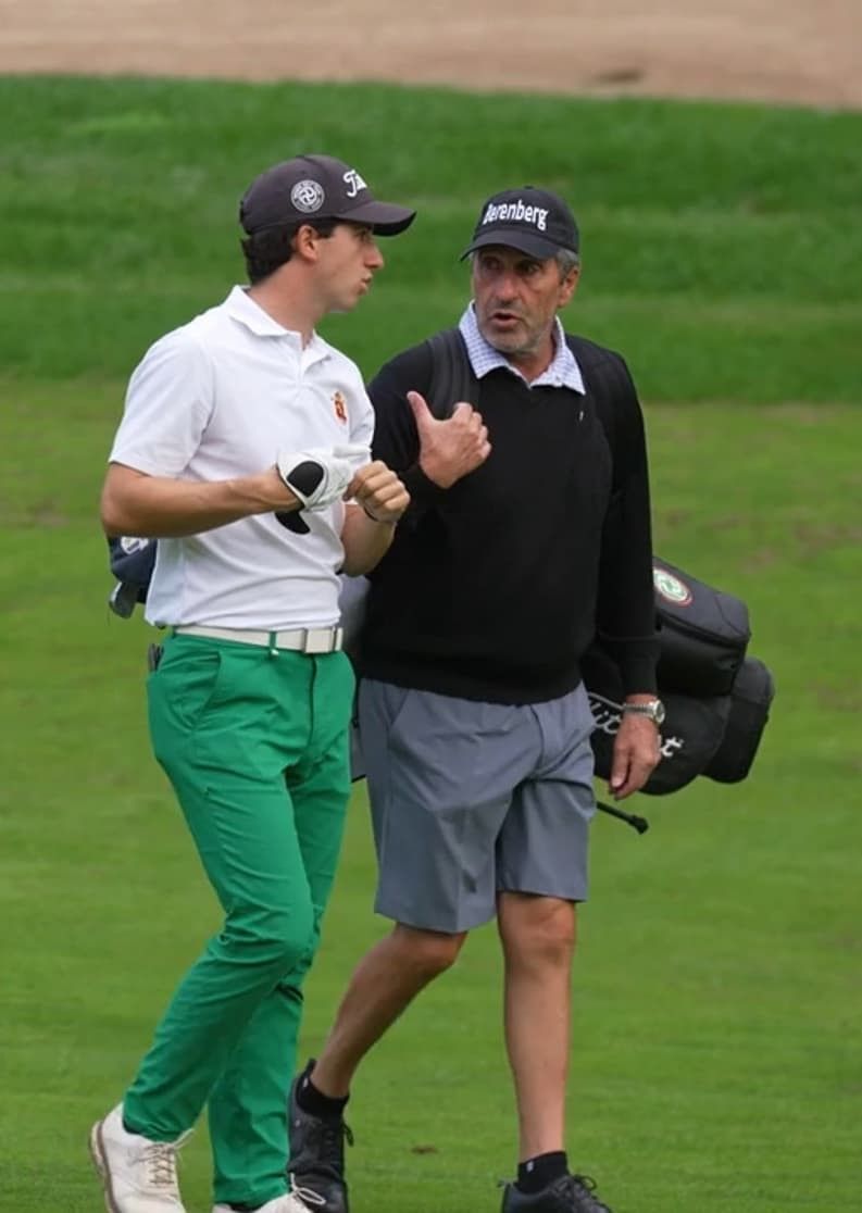 José Maria Olazabal is voor de gelegenheid zijn ervaren bagman. José Maria is immers de oom van Joseba. Zijn moeder is een zuster van de tweevoudige Masters-winnaar.