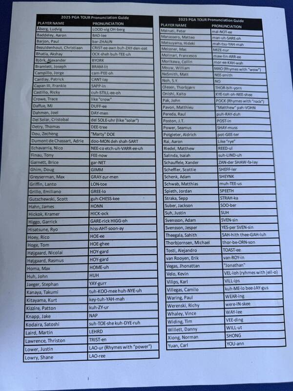 In aanloop naar de WM Phoenix Open volgende week heeft men een lijst gemaakt met de juiste uitspraak van de verschillende namen. Fonetisch tracht men uit te leggen hoe al die namen uitgesproken moeten worden.