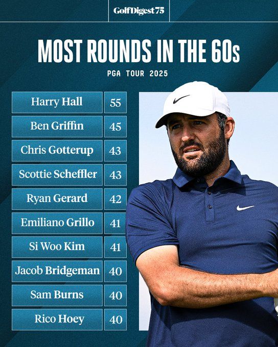 Harry Hall, de Engelsman die op de US PGA Tour speelt, heeft dit seizoen de meeste ronden onder 60 gelopen. Hij mocht 55 maal een 60-er optellen.