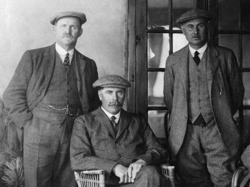 Harry Vardon won The Open zesmaal. Dat was in 1896, 1898, 1899, 1903, 1911 en 1914. De op het Kanaaleiland Jersey geboren topper won in 1900 ook nog de US Open en was, met John Henry Taylor (foto links) en James Braid (foto midden), één van het legendarische Great Triumvirate.