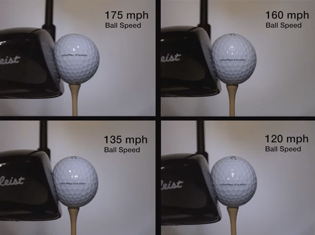 Titleist heeft een foto gemaakt waar je ziet hoe een bal vervormt bij impact van een driver. Opvallend is dat er weinig verschil in compressie is tussen een harde drive en eentje die veel langzamer is.