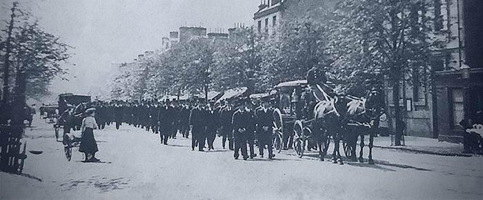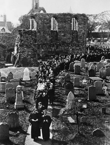 Van de rouwstoet, die de weg van zijn shop naast de Old Course over de hele South Street tot de begraafplaats vulde, zijn er maar weinig foto's. Deze twee.