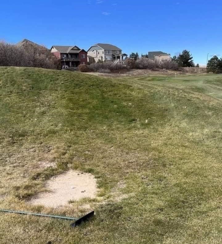 Kijk eens goed op de foto. Het is wel degelijk een bunker; Vandaar die hark er vlak langs. Is dit de kleinste bunker op een golfbaan? Ook de mini bunker op de vijftiende hole van Oakland Links (foto) of de Coffin Bunker op de zeventien hole van TPC Scottsdale claimen die titel.
