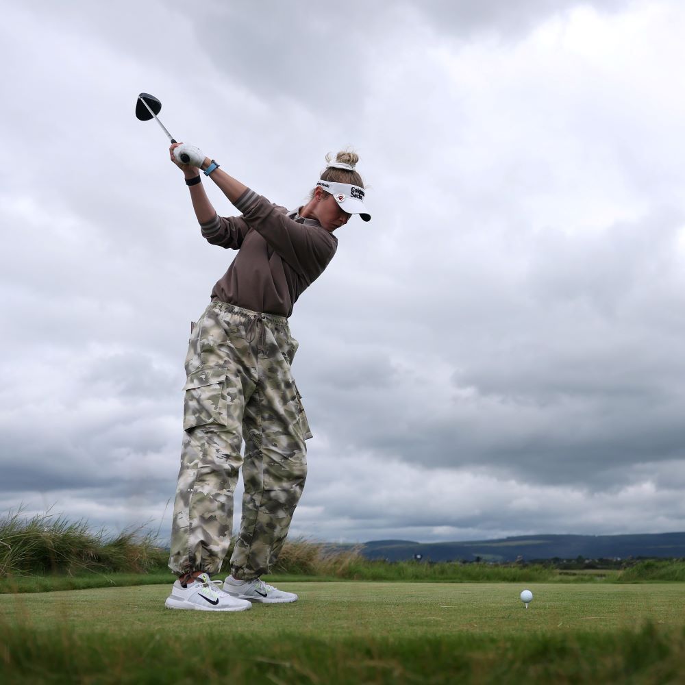 Zowel Nelly Korda als Charley Hull liepen hun verkenningsronde op Royal Porthcawl in wat je “combat dress” kan noemen.Zij zijn duidelijk klaar om vandaag in de AIG Women’s Open strijd te leveren.