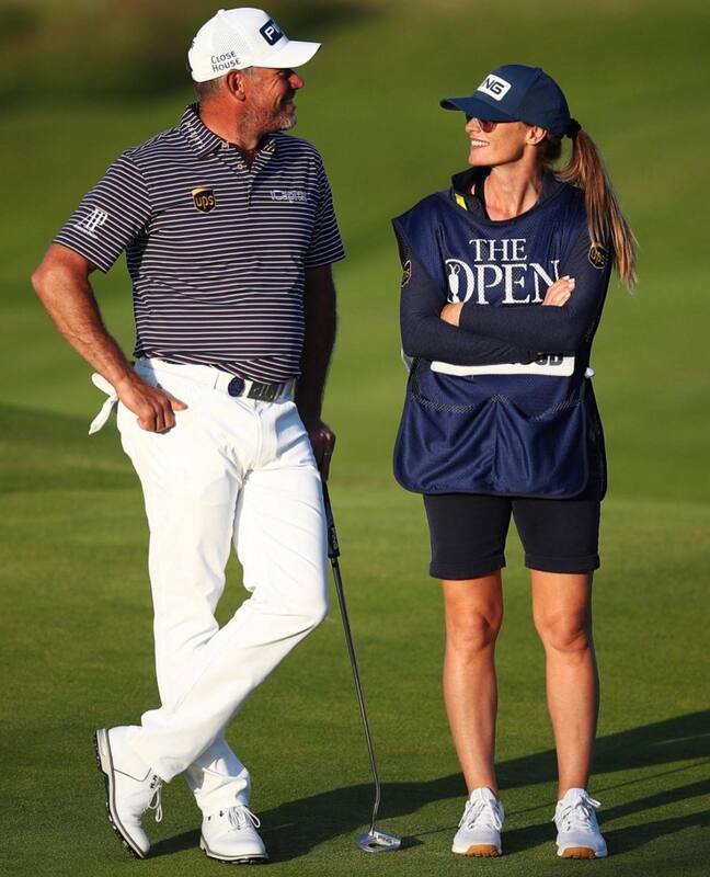 Lee Westwood hoeft niet lang na te denken welke club hij moet nemen. Op zijn ijzers staat immers de afstand die hij met een bepaald ijzer slaat. Handig…Ook voor caddie/vrouw Helen Storey.