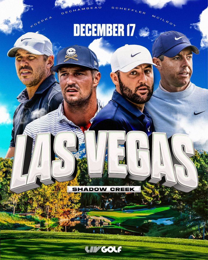 LIV Golf promoot “The Showdown” waar op 17 december in Las Vegas op Shadow Creek het duel tussen enerzijds Scottie Scheffler en Rory McIroy en anderzijds Bryson DeChambeau en Brooks Koepka uitgevochten zal worden.