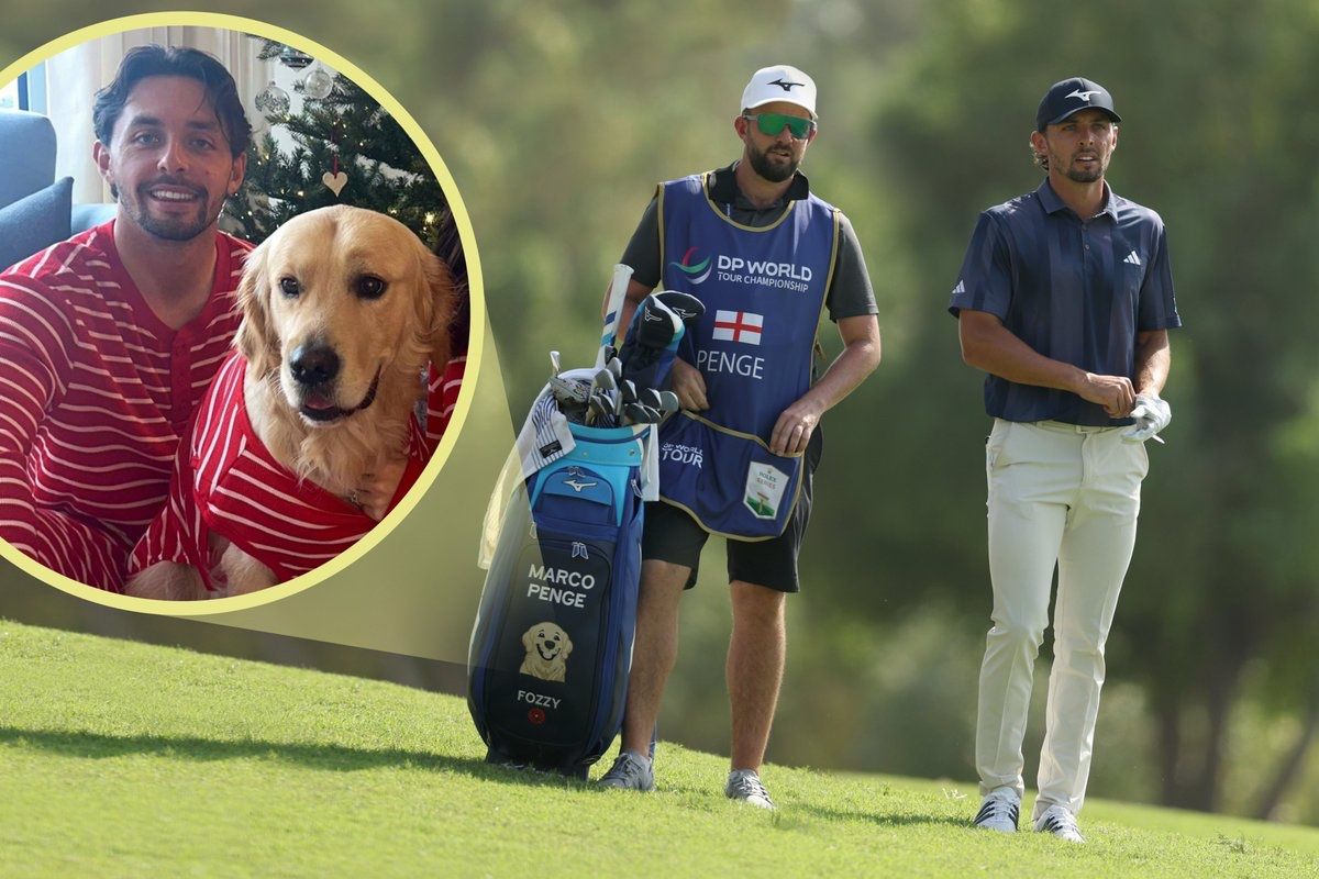 Op de bag van Marco Penge staat er een speciale sponsor.“Fozzy” is de naam van zijn trouwe hond die daar prominent op staat. Neemt hij hem mee naar de US PGA Tour?Niet de hond, wel de bag...