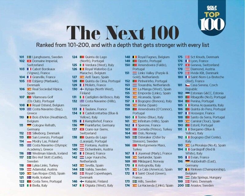 Gisteren publiceerden we de hele Top 100 van Continentaal Europese golfbanen volgens Golf World. Vandaag de Next 100, dus banen die net buiten de top 100 vielen. Met dus vijf Belgische golfbanen.