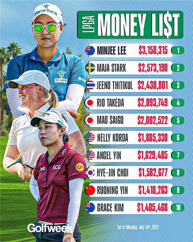 Dit is de top 10 van de best verdienende toppers op de LPGA Tour.Minjee Lee leidt de dollardans. Na The Women’s Open kan daar nog een fiks deel bij komen.