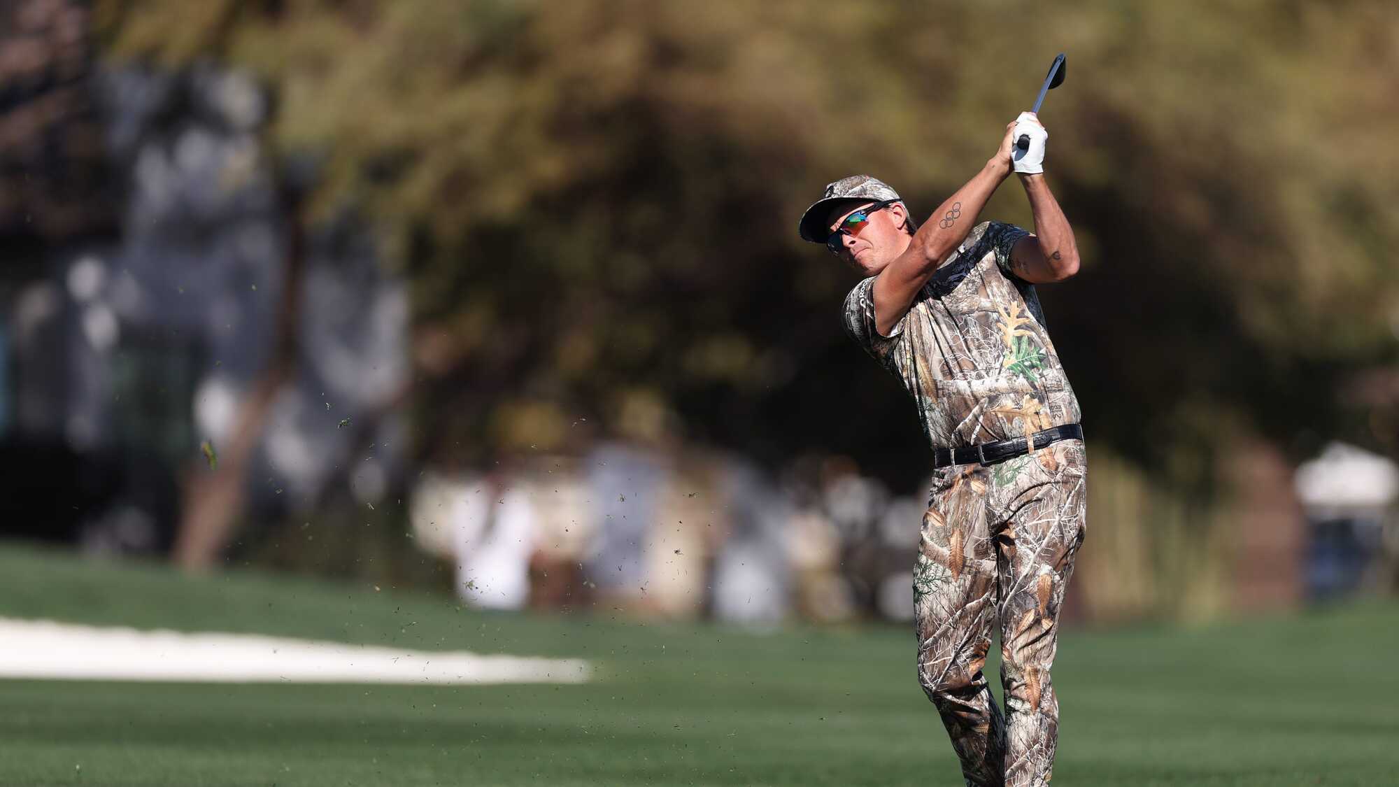 Sponsor Puma stak Rickie Fowler in de WM Phoenix Open in een opmerkelijke outfit. Dat plunje bleef wel na één ronde in de kast zitten, want Rickie gaf wegens ziekte op. Onwel geworden van de kleurrijke tekening?