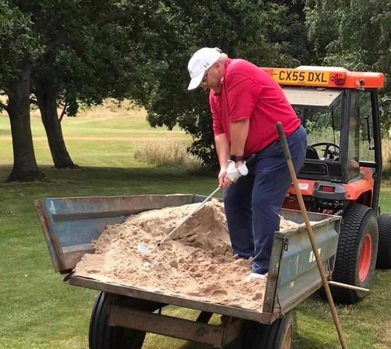 Play it as it lies… Dat geldt voor deze golfer die zijn bal in de aanhangwagen van een greenkeeper zag belanden. Daar lag zand in en hij besloot dan maar van daaruit naar de green te gaan. Leuk…Er was uiteraard een andere oplossing.