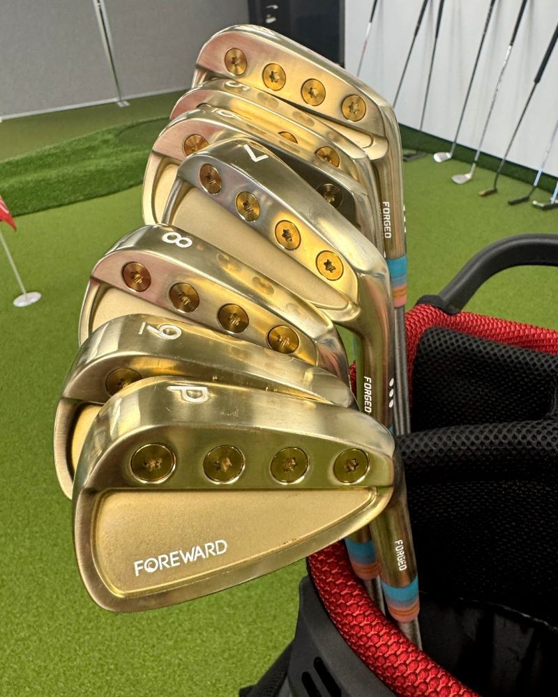 Foreward is een kleine clubbouwer. Om een plaatsje te veroveren op de golfmarkt heeft de Californische firma een set met een “gold look” voorgesteld. Alleen is de finish eerder koper. Zou jij 1600 dollar uitgeven voor deze blinkende set?
