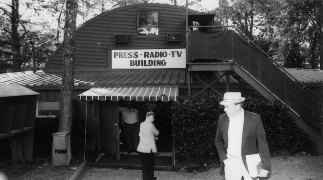 Dit was de persruimte op Augusta National Golfclub tijdens The Masters in 1997.Dit jaar was die stukken indrukwekkender.Tijden veranderen…