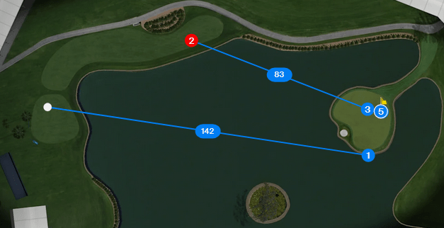Zoals we reeds stelden liep Thomas Detry tegen een pijnlijke 79 aan. Daar zat ook een double bogey 5 op de roemruchte par 3 eilandgreen bij.