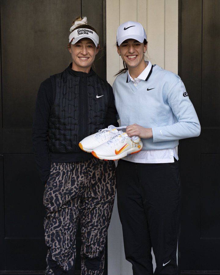Nelly Korda en Caitlin Clark, de absolute ster van het Amerikaanse basketbal, worden allebei rijkelijk door Nike gesponsord. Caitlin, die in de Pro-Am van The Annika samen met Nelly speelde, kreeg van haar de nieuwe Nike Korda golfschoenen. Met een oranje accenten en wat bling bling.