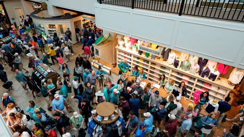 Waarom moet je dertig minuten in de file staan vooraleer je de merchandise tent van The Masters op Augusta National binnen raakt? Omdat men héél veel koopt en dat dus tijd vraagt om alles te kiezen en af te rekenen. Dit was de “buit” van één enkele kooplustige toeschouwer…