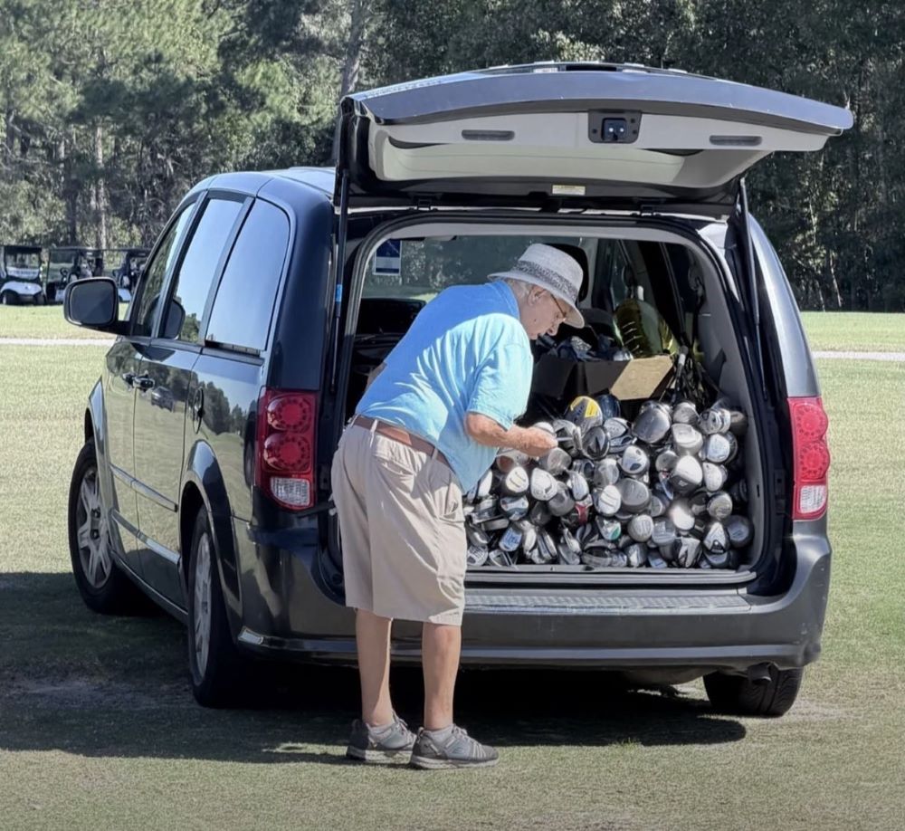 Deze golfer heeft keuze zat wanneer hij een driver of een wood moet kiezen. Of zijn het allemaal afgedankte slagwapens die hun taak niet aankonden?