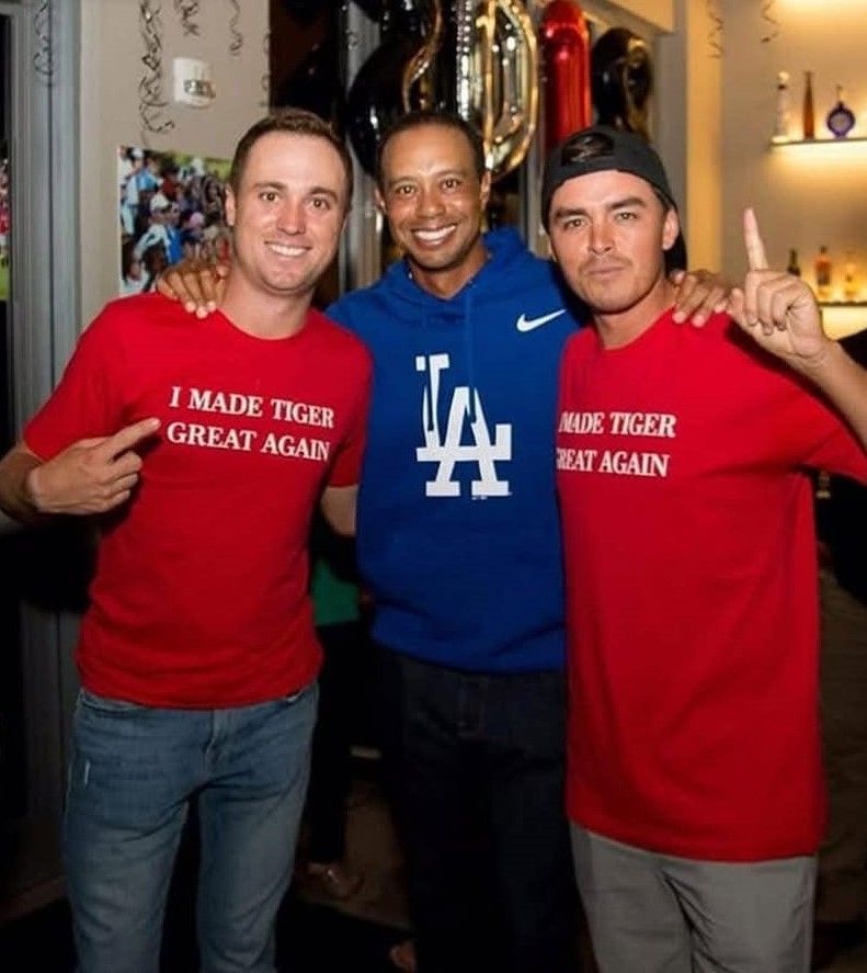 Justin Thomas en Rickie Fowler steunen Tiger Woods in zijn pogingen om terug… Tiger Woods te worden.