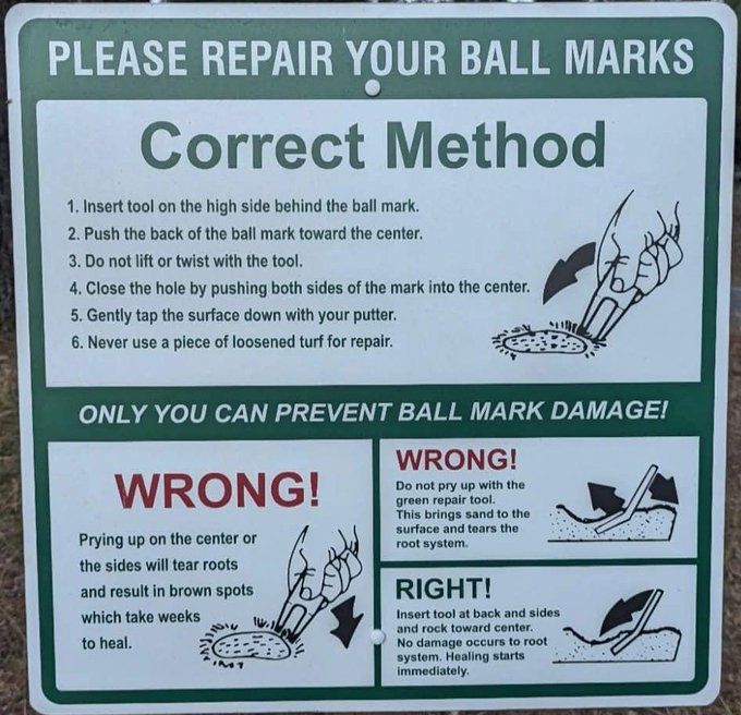 Laat ons afspreken dat we niet alleen onze pitch mark herstellen, maar ook eentje van snoodaard herstellen die zich blijkbaar niet kon “bukken”. Dan zijn er geen pitch marks meer.